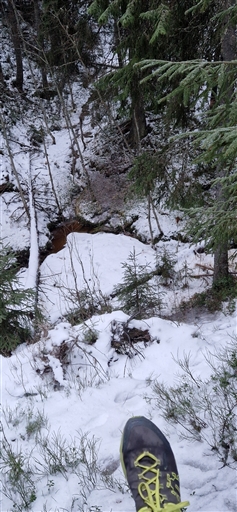 -5 mulet o lugnt. Väldigt isigt i skogen och lite skarsnö.