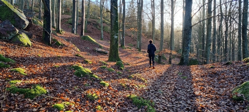 Det blev soligt och ganska varmt och skogen skyddar från vinden. Benen känns riktigt starka idag. Isak är med men efter första vändan kör vi var för sig.