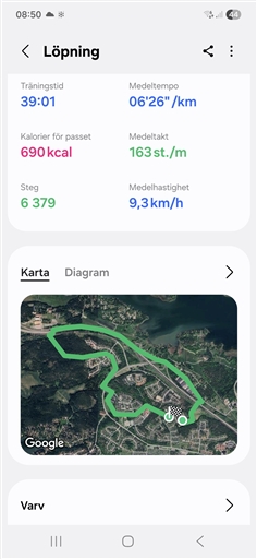 typ, distans, tid och snittfart. Stjärnmedlemmar kan kopiera samtliga fält och diagram.