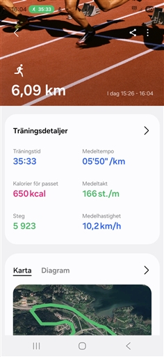 typ, distans, tid och snittfart. Stjärnmedlemmar kan kopiera samtliga fält och diagram.