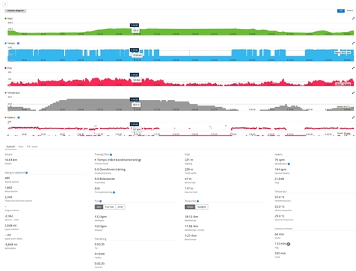 typ, distans, tid och snittfart. Stjärnmedlemmar kan kopiera samtliga fält och diagram.
