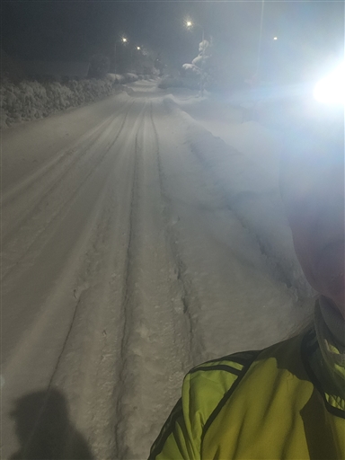 Mera snö hade fallit under natten, började med att skotta ut mig till den oplogade vägen. Fint plogat på trottoaren upp till badet, sedan blev det oplogat upp till Timotejen. Hela snösvängen ute, fick ta ett rejält kliv ut i snödrivan när jag mötte plogbilen i Ängby. Oplogat ner mot fotbollsplanen, mötte grannen Christer med lilla hunden på Centralvägen idag igen. ❄️🐶