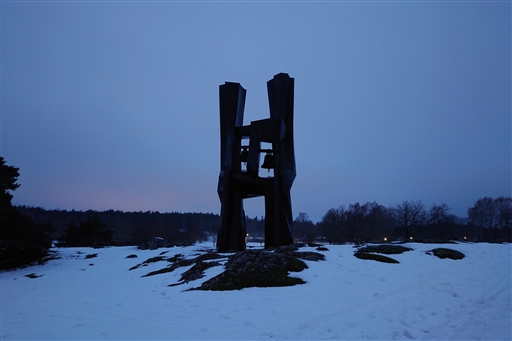 Det är klockstapeln till kapellet på Berthåga kyrkogård. Vid ca 2,5 km på den här turen.
