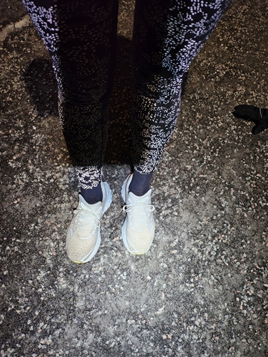 Ut i 0 grader o nästan vindstilla. Tog mina sommarskor, då det verkar vara snö o isfritt på de flesta trottoarerna här i Knivsta. Vanliga varvet o bra fäste. Såg rådjur i Ängby. 🦌