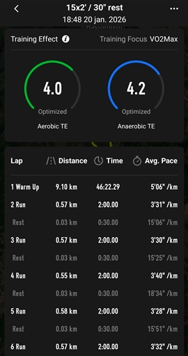 15×2’/30" rest. Avg. 3.35 min/km.