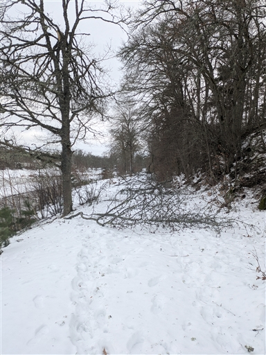 Knöligt packad snö, skare som nästan bar och massor av nedfallna träd och grenar. Svettigt värre men riktigt kul, annorlunda och bra träning. Tillbakalöpet fick dock bli på plogad väg.😅