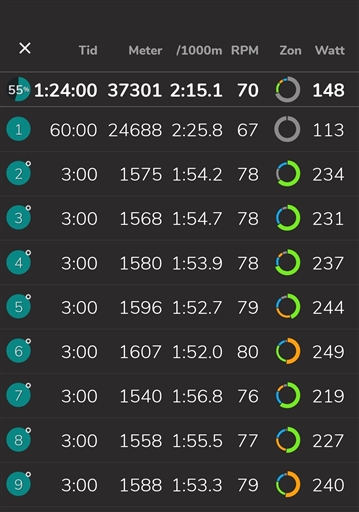 typ, distans, tid och snittfart. Stjärnmedlemmar kan kopiera samtliga fält och diagram.