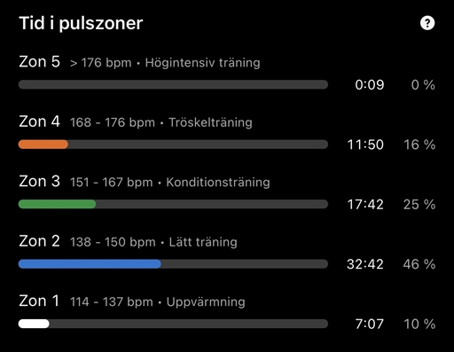 Längre uppjogg 8k och sen 2k@4,02 ihop med Härdan🙌🏼 startade sen den andra lite för snabbt (3,46 efter snabbar öppning) och kände att en tredje inte skulle vara produktiv. Delade därför upp den sista i 4x500mdd en tanke om 3,40. Slutade med sista i 3,25 och 3,36-snitt. Bättre än väntat👍🏼 ljumsken gnällde inte så mycket under passet men får se vad den säger nu efter. Glad i hågen hur som👌🏼