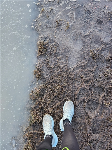 Ut i frisk gryning, upp Emil Sjögren o vek ner vid strandpromenaden då det var så pass ljust att jag såg marken! Timotejen o Gredelbyleden. Ängby o väl framme vid Bönhuset bestämde jag mig för att svänga in höger o ta traktorvägen för första gången på länge. Det var ganska fruset men vissa partier riktigt blöta o faktiskt lite snö kvar. Under jörnvögsbron, förbi kyrkan o precis innan jag kom hem mötte jag min gamla jobbkompis Johan på cykel på väg mot Arlanda.
