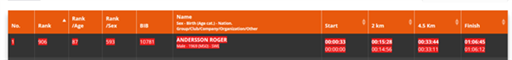 Jag bifogar bild från resultatdelen. Bäst svensk i loppet som gick i sol, regn och åter sol.