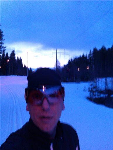 6 varv på konstsnöspåret. Isigt idag, plusgrader på dagen, minusgrader under passet.