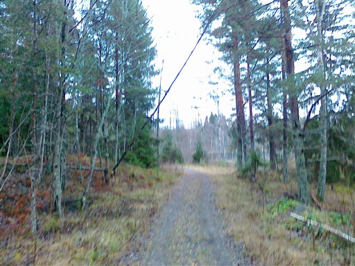 Bäver-stopp på milspåret (drygt 4 km från Tveta): träd lutat över spåret; översvämning som tvingade mig runt och upp på banvallen