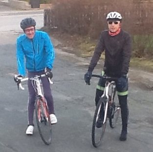 Med Micke och Anders, in till stan via Vallås till Åled, Holm Kvibille Harplinge, lugn fart, skönt väder +2C solsken, en del vind. Sprätte i några backar, kändes bra.