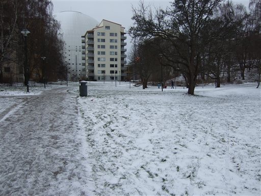 Tänker ta med mig kameran på mina söndagspass hädanefter. Tyckte det såg lite häftigt ut, med det" lilla" flerfamiljshuset med globen i bakrunden. Glömmer ibland hur stor den där bollen egentligen är :-)