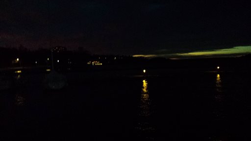Skön temperatur ute och pigga ben. Så vackert längs vattnet i mörkret.