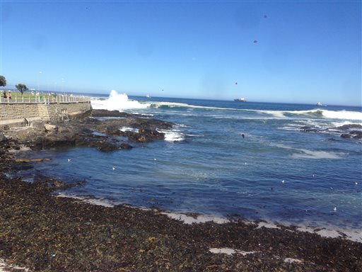 Sköna sydliga vindar svalkade i den 30-gradiga värmen! Många joggare ute längs havet och utsikten var underbar (se fotot). Nu bär det av hemåt mot kylan och mörkret...