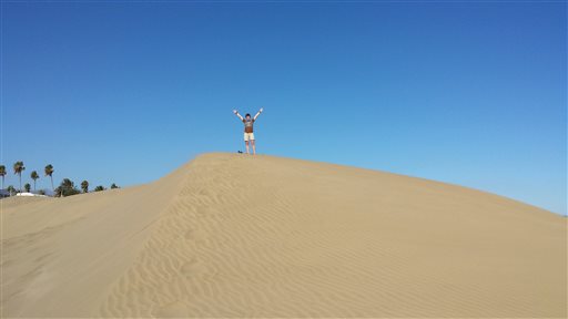 Vi sprang ca 2,5 km på sanddyner och resten längs stranden.