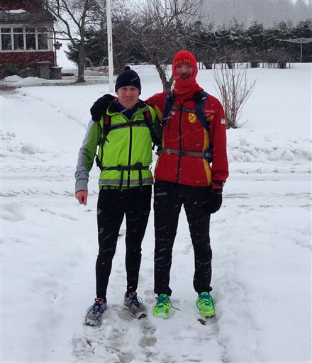 Ultrapass med Peter. Som vanligt tung på slutet dessutom med tilltagande snöfall de sista timmarna. Burgare på Max efter 25 km. Buljong och coca-cola efter 42 km. Bastu, mat och dryck hemma hos mina arbetskollegor i Österfors.