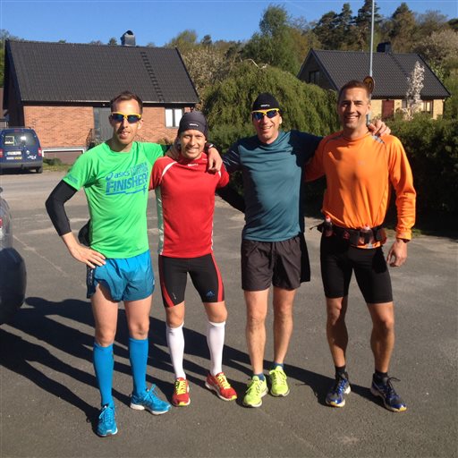 Öppnade första milen på 44,30, tappade rätt mycket på andra milen, kändes ganska hyfsat faktiskt. Kul pass med Kälebo, Lans och Honauer, Paulander sköte service från cykeln.