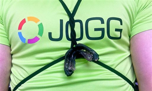 "Tighta till axelbanden på gympapåsen och lås med tandskyddet. Så!"