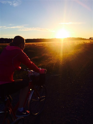 Hade ärende ner till Åhus. Tog hojarna. Rullade hem i solnedgången. Galet vackert.