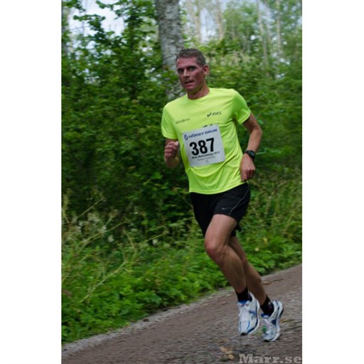Planen var att hamna på snittfart 4:15/km och det var precis vad det blev. Tvärtemot planen så gick det däremot lite väl fort första 4. Det är mest uppför och planen var att ta det lugnt för att ha krafter på slutet. Men benen var pigga och det kändes lätt så man drogs med. Vid 4 börjar en rejäl uppförsbacke och sedan går det mer enligt planen fram till 7. Trodde det värsta var över, men går lite för hårt i den sista backen. Drar på mig för mycket mjölksyra och får håll. Trots att det är platt fram till 9 är det tugnt. Efter 9 går det nästan bara nerför. Lyckas öka en del men inte som jag hoppats. Tar ändå in lite på de som är framför och avslutar i all fall med en bra spurt.