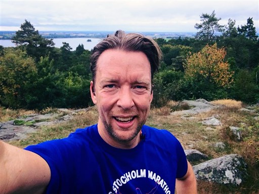 Upp halvvägs på berget då jag vek ner mot parkeringen för att där springa hela vägen upp mot utsikten. Konstpaus. Sedan ner mot sjön, vända vid skylten och tillbaka upp till toppen för den obligatoriska selfien. Sedan ner och hem. Ingen dricka eller tuggbart med. Började känna mig tom vid 17. Sista halvmilen fick jag bita ihop lite. De första 17 var dock en ren fröjd. Älska löpningen!