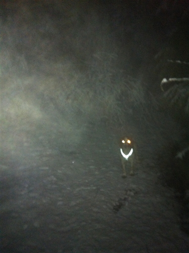 5km södra i snö och dunkel med lycklig hund!