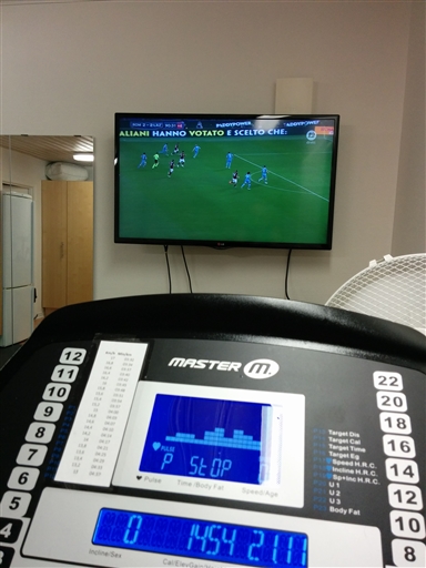 Så var det äntligen dags för säsongens största och viktigaste match, hemmaderbyt mot Lazio. Av säkerhetsskäl spelas matcherna oftast på sändagseftermiddagen vilket känns lite sådär. I år tog jag en halvmara på löpbandet med programmet "rolling hills" till matchen istället för det sedvanliga med soffa, öl och chips.