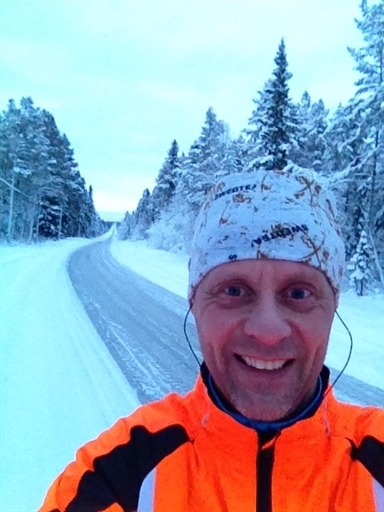 Mellan kilometer 14 och 17 var det skogsväg med snö att pulsa i. Tufft uppför i ca. 1 km ;-)