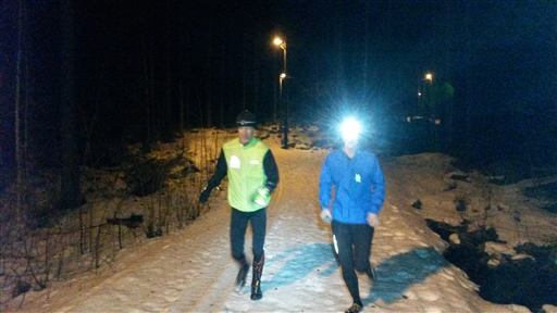 Först ett varv på MTB-spåret och sedan 5 km på elljusspåret. Isigt men det börjar ge sig mer och mer. Kerstin och Bosse var också med.