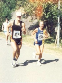 Kvinnan på bilden är Ewy Palm i 1996 års upplaga av Oxelöloppet. (Till vänster är jag).